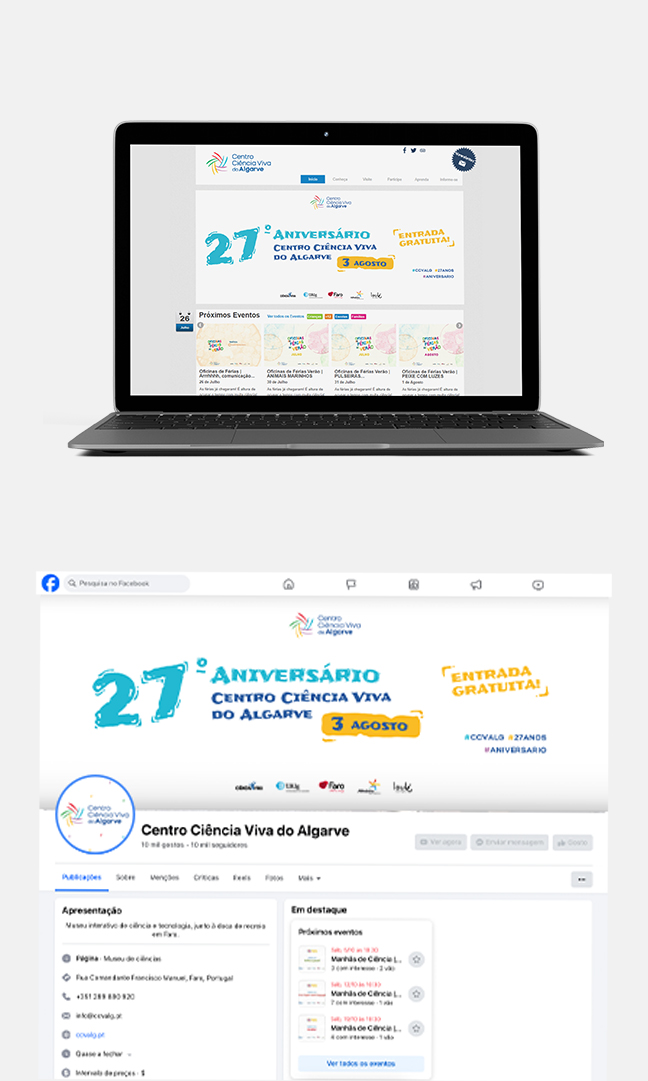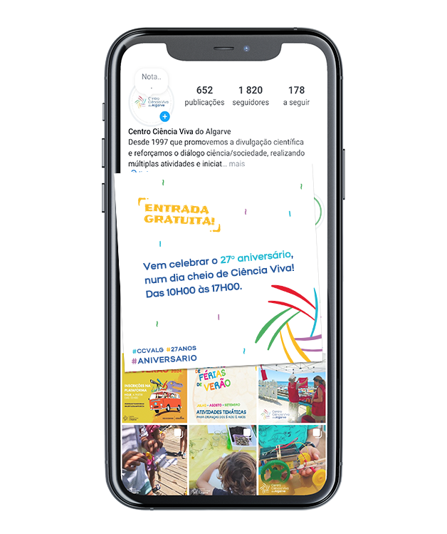 O aniversário do Centro Ciência Viva do Algarve é um dia de partilha, de ciência e de celebração. Convida-se toda a sua comunidade através de todos os meios, pesonalizando a interação, comunicando de uma forma mais próxima.
